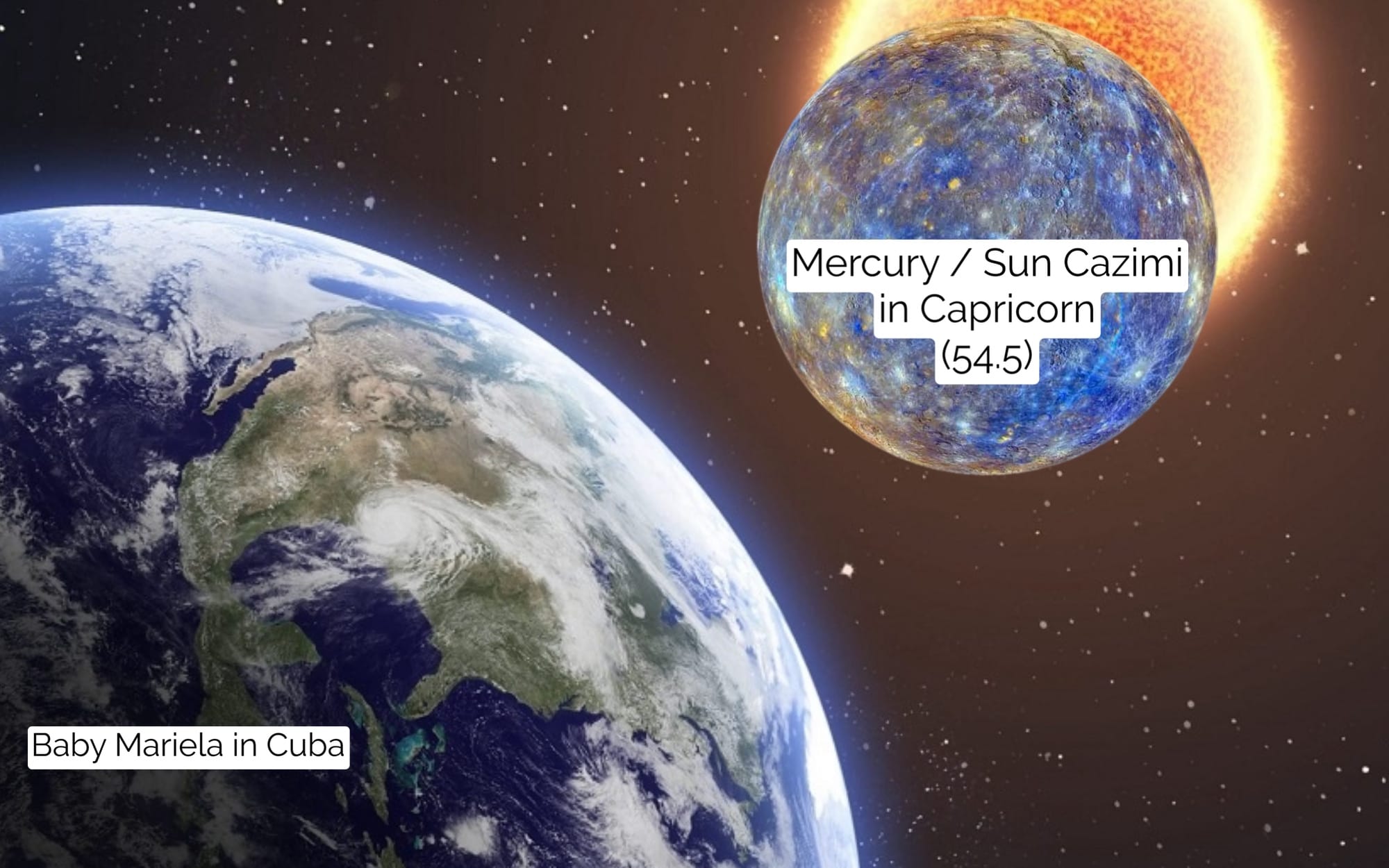 Because on the afternoon I was born (in Cuba) Mercury and the Sun were making an important conjunction, called a CAZIMI.